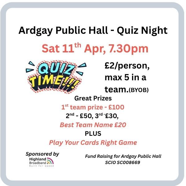 Ardgay Hall Spring Quiz. 11th Apr 2026.